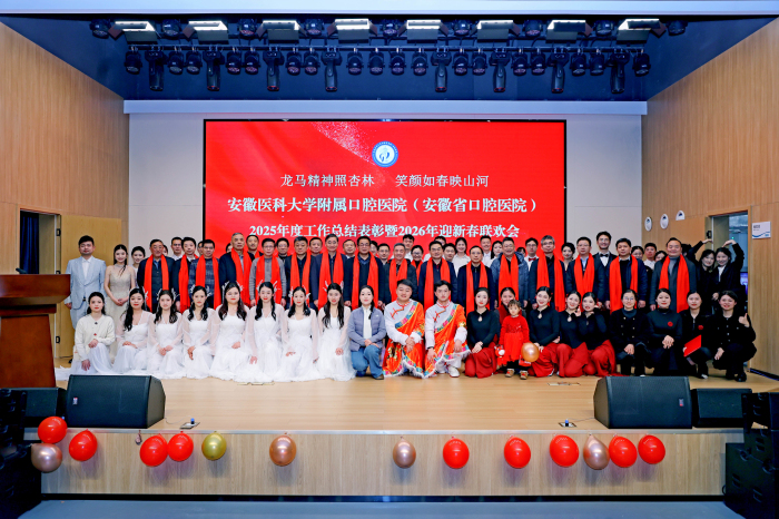院党委书记刘颀致新春贺词。他代表医院党委和行政,向关心支持医院发展的校领导,退休职工以及全体师生医护员工,致以诚挚的感谢与新春的问候。刘颀表示,回首2025年,医院各项工作亮点频现、成绩斐然。2026年是“十五五”规划的开局之年,更是医院发展进程中的关键之年。面对博士点申报、三甲评审两大攻坚任务,全院上下要锚定发展目标,持续坚持“党建领航”把稳方向、“医疗提质”筑牢根基、“科教融汇”增强动能、“管理增效”优化生态,奋力朝着建设国内一流、特色鲜明的高水平医科大学永利 和附属口腔医院的目标迈进。