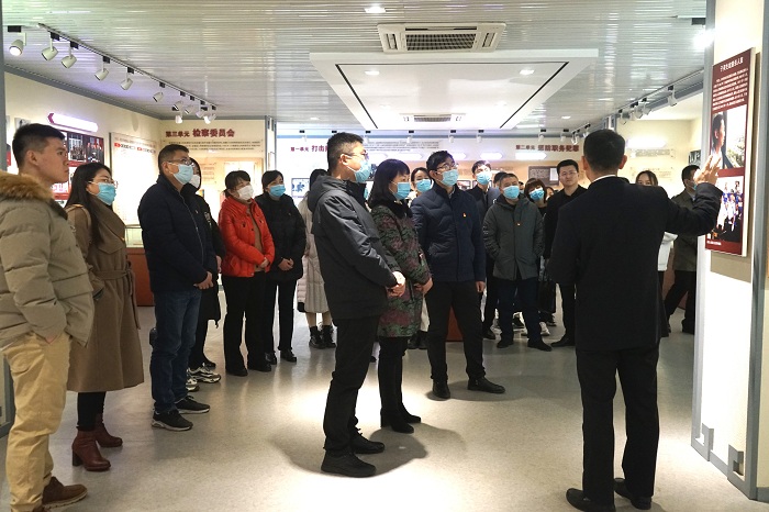 2020年12月24日下午,院中心组学习成员前往安徽省人民检察院法治教育基地学习开展法制教育活动。在安徽省人民检察院检察委员会委员、一级高级检察官胡胜友陪同下,院党委书记王润玲、院党委副书记陈然、院纪委书记赵新斌一行参观了公诉案例展示大厅,检察院宣传处副处长韦道军为成员们介绍了检察院公诉的优秀案例。参观中,中心组成员了解了近90年来安徽检察机关艰难曲折的发展轨迹和检察史,强化了法治思维。全体人员还观看了警示教育片《围猎·行贿者说》,大家以党员干部违反纪律底线的反面案例为镜鉴,进一步筑牢了拒腐防变的防线。