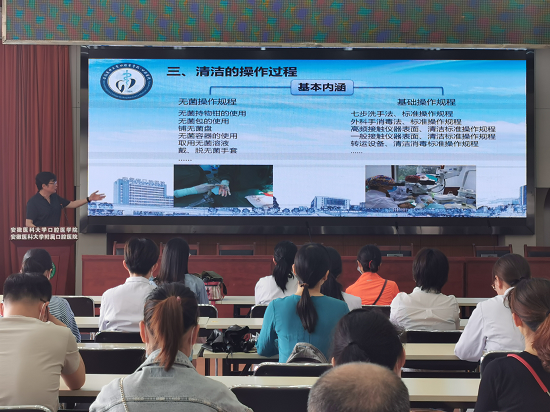 王海林从医院感染管理现状、能力建设顶层设计、能力建设的内涵、能力建设的评价四个方面进行讲授,他强调要加强重点部门和重点环节管理、全面落实医院感染防控措施、不断完善医院感染相关技术标准体系、加强医院感染组织管理和队伍建设。他表示院感管理贯穿于医疗活动的全过程,保障患者安全,是健康服务的基本要求,希望大家提升能力,提高院感风险评估意识,做好清洁安全医院建设,做到制度、流程可执行,且执行有效果,效果可持续。
