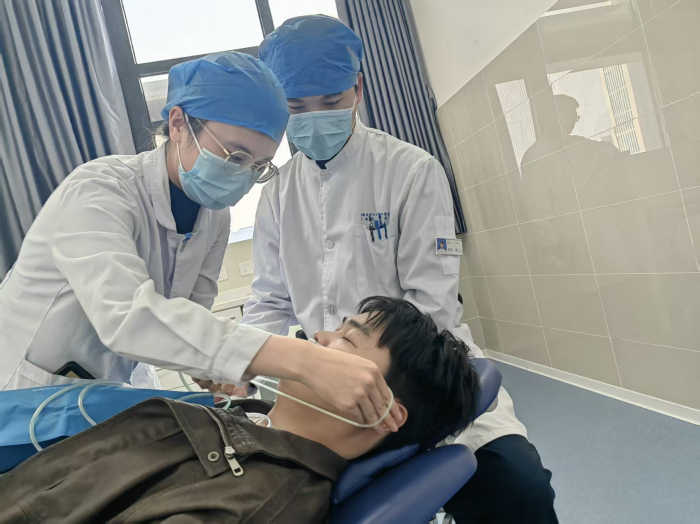 除传染病防控外,演练还涵盖口腔门诊常见突发医疗事件 —— 患者晕厥处置的应急演练。模拟患者李女士(50 岁,糖尿病史 5 年,空腹就诊)在口腔颌面外科门诊治疗时,因紧张、低血糖突发晕厥。