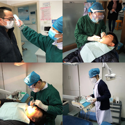 当前,疫情还在持续,牙周黏膜科每位医务人员始终坚守岗位,为口腔急症患者解除病痛,用坚守诠释着责任与担当。为每名来科就诊患者再次测量体温,并准备了免洗手消毒液,提醒大家出入洗手;准备了漱口水,提醒患者诊前漱口。面对疫情,他们放弃了休假,放弃了与家人团聚的时间;面对部分就医心切、不理解、有怨言的群众,他们微笑服务、耐心引导。