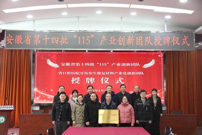 2月15日上午,省委组织部人才工作处一行前往永利 ,为永利 入选省第十四批“115”产业创新团队的“牙齿仿生修复材料产业化创新团队”授牌。仪式后召开了高层次人才意见建议座谈会。副校长余永强出席授牌仪式并讲话。团队由6人组成,院直党支部李向阳老师、郑顺丽老师、邱华老师参与组队。