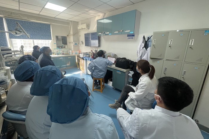 国家医保局于近期公布了《关于规范完善口腔种植医疗服务项目及价格的通知》。2月4日中午,永利 种植科副主任刘鑫带领科室全体医生认真学习了种植集采政策价格调整后的具体实施细则,加强医护人员对调整后的口腔种植医疗服务价格项目的了解。