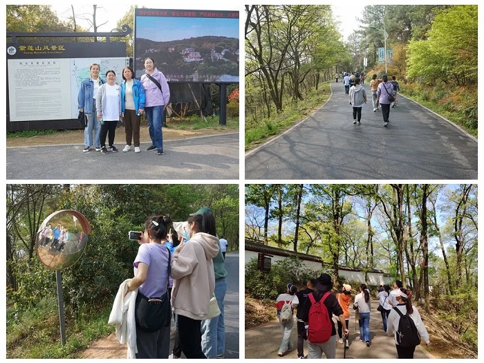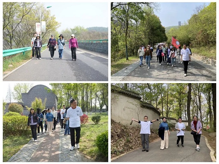 活动开始前,大家在山底合影留念,相机定格了大家的笑容,也定格了最美好的瞬间。院领导率先带领大家向山顶进发,沿途风景宜人,有青松翠柏,有缤纷绚烂的樱花,有古朴的山寺......职工们三五成群,或健步如飞,或驻足欣赏,徜徉在这醉人的春日风景里,一路欢声笑语,成为了一道亮丽的风景线。经历两个小时的爬山旅程,大家不仅锻炼了身体,也愉悦了心情。