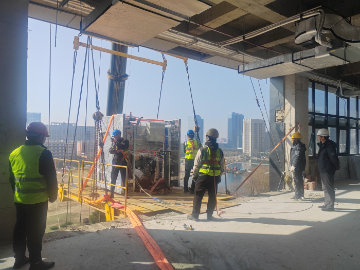 此次吊装入场的重磅设备是脉动真空灭菌器,用于耐湿耐热的制药行业、医疗器械等的灭菌。在做好充分的前期准备下,经过大型吊车、叉车等共同协作,顺利完成这些大型设备的进场工作。