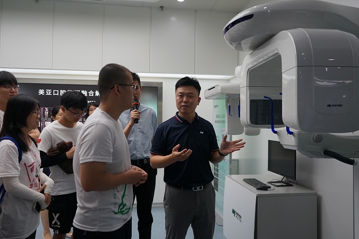 当天下午,支部成员来到美亚光电科技有限公司进行参观。美亚光电是一家致力于打造以智能识别技术为核心的高科技服务企业,通过拓展光电识别的深度和广度研发先进装备,在农业、工业、医疗等各领域发挥重要作用。支部成员先后参观了人工智能色选机、血管介入手术机器人、三维数字化口腔CBCT等产品,直观了解到科技创新助力医疗发展的最前沿动态。支部成员还同美亚公司就深化校企合作、拓宽实践教学途径等开展座谈交流。在场学生对于口腔医疗未来的发展趋势各抒己见,并就该公司的发展定位同自身的就业方向的关系积极提问和发言,现场反应热烈、效果良好。