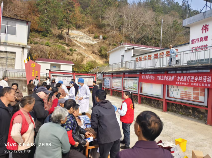 12月2日,院直教工第二党支部携手安徽省审计厅综合法规处党支部,共赴潜山市水吼镇梅寨村开展“口腔健康义诊进乡村”活动。此次活动是落实党的二十届四中全会精神,加强支部共建的重要实践,通过送医上门的方式,将专业口腔健康服务直接送至基层群众身边。