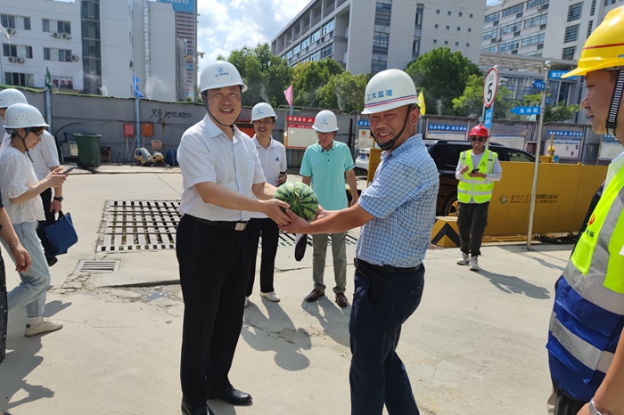 6月27日下午,副校长梁朝朝深入永利 新院区建设工地调研指导工作,为一线建设者送清凉。