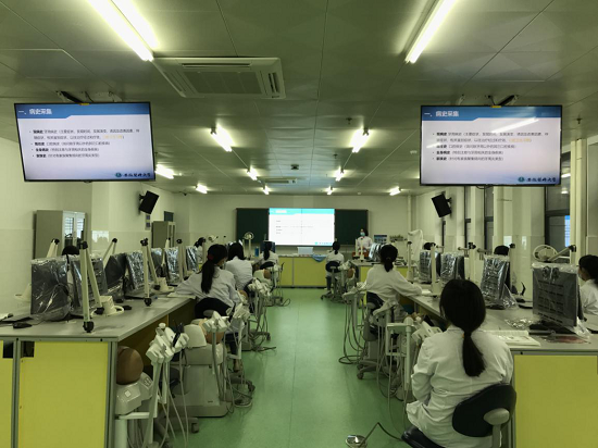 院口腔医学实验教学中心完成了从四教到力行楼地整体搬迁后,建筑面积约1000㎡。实验室参照智慧教室理念,构建了教学系统、人员考勤系统、视频监控系统和智能管理系统,装备口腔教学仿真头模系统66套,口腔显微镜2台,以及其他口腔实验教学仪器设备和模型500余件次。各类功能地实验室基本配备完善,结构布局合理,能满足不同课程教学的需求。