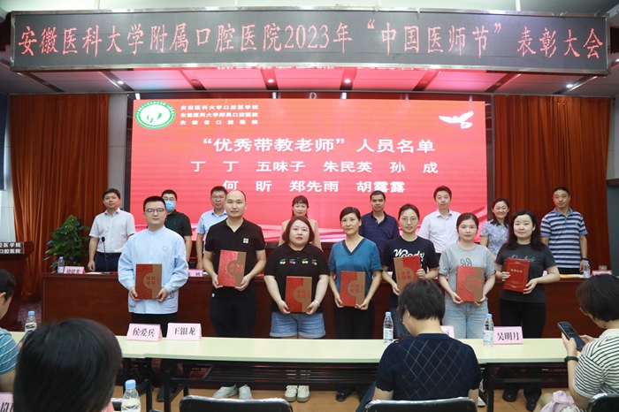 大会对2022年度医院“优秀带教老师”、2023年青年医师临床技能竞赛各个赛道的获奖医生和团队进行了表彰。“2022年安徽省五一劳动奖章”获得者马腾飞作为优秀医师代表上台发言。