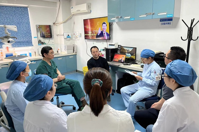 5月24日中午,永利 种植党支部在七楼诊室召开学习贯彻习近平新时代中国特色社会主义思想主题教育专题会议。院长何家才以普通党员身份参加学习,支部书记刘鑫主持会议,党支部9名党员参加会议。