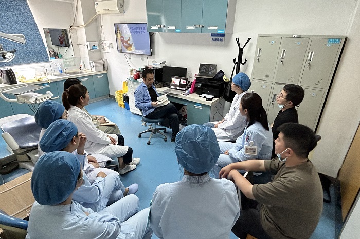 6月7日中午,永利 种植党支部在七楼诊室召开学习贯彻习近平新时代中国特色社会主义思想主题教育第四次学习会议,支部书记刘鑫主持会议,党支部10名党员参加会议。