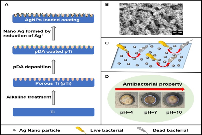 牙科种植体频繁发生微生物引发的并发症,影响种植体长期稳定性并造成周围组织炎症、降低生活质量,且该类并发症根除困难、易复发,故如何在保障使用效果的前提下预防该类并发症,成为生物材料表面改性的重要科学问题和亟待解决的临床难题。