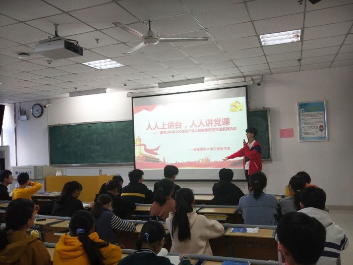 还面向全体研究生和本科生开展了“人人上讲台,人人讲党课——建党100年100位共产党人的故事”微型党课系列活动(简称“双人双百”)。活动每次由3名党员宣讲8位至9位共产党人的故事,至2022年建党100周年时,完成100节微党课,展现100年以来100位共产党人可歌可泣的英雄画卷。据悉,活动为期一年,每月一次,自9月以来已开展3期。同学们纷纷表示,活动不仅使自己进一步深入学习习近平总书记关于加强“四史”学习教育的重要论述,感受到共产党人的光荣传统和优良作风,也使得大家变“被动听”为“主动学”, 化“台下坐”为“台上讲”,实现了人人讲党课,个个谈心得,全员受教育。