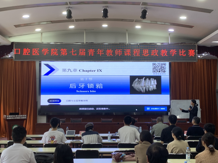 比赛以“立德树人、以文化人”为宗旨,分为教案设计和现场授课两个环节,重点考察教师的教学设计能力、思政元素融入技巧及课堂互动效果。共有来自全院各科教研室的14名优秀青年教师参加,涵盖儿童口腔医学、口腔解剖生理学、牙体牙髓病学、牙周病学、正畸学、口腔修复学、种植学等多个专业方向。
