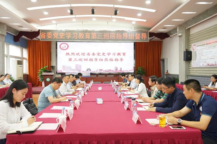 6月3日下午,省委党史学习教育第三巡回组指导座谈会在永利 健行楼六楼会议室召开,省委党史学习教育第三巡回组副组长、宿州市政协副主席魏建华一行5人、校党委宣传部常务副部长惠继荣一行5人来院督查工作。院党委书记王润玲作工作汇报,院长何家才主持会议。