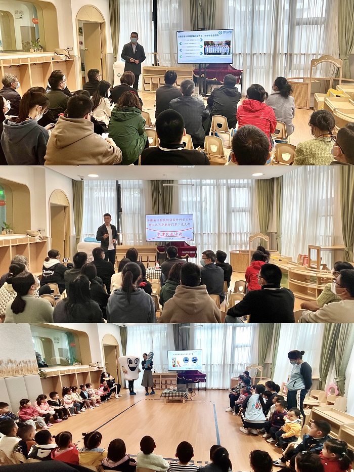 托育园园长对永利 颌面外科党支部的到来表示热烈欢迎。陈新就安徽省口腔医院口腔颌面外科党支部(科室)的党建及业务开展情况进行了简单介绍。随后,主管护师郭爽就如何保护牙齿及正确刷牙对小朋友进行健康宣教。沈博文医生为家长们开展了一堂精彩的《口腔健康知识》讲座,详细介绍了婴幼儿口腔常见病及处理,并与陈新主任就常见口腔保健问题对家长进行答疑解惑。颌面外科医护人员还对小朋友的口腔进行了细致的检查,并针对具体情况提出个性化治疗方案和合理化建议。现场气氛融洽,小朋友们积极配合,并与医生展开良好互动。