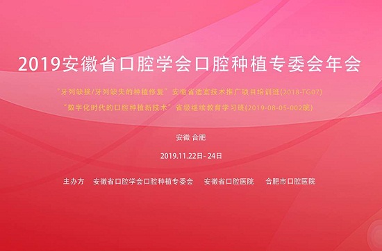 11月22-24日,由安徽省口腔学会口腔种植专委会、安徽省口腔医院、合肥市口腔医院联合举办的“2019年安徽省口腔学会种植专委会年会”在合肥召开,大会同期举办了“数字化时代的口腔种植新技术”省级继续教育学习班、“牙列缺损/牙列缺失的种植修复”安徽省适宜技术推广项目培训班。