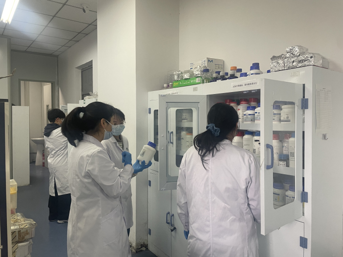 此外党员志愿者们还对实验室公共操作台、通风橱等公共区域等重点部位进行排查,重点查找公共摆放的试剂中是否存在危化品、危化品是否规范存放等情况,尤其关注易燃、易爆、遇湿易燃、剧毒等高危化学品的存放状态,对排查中发现的违规摆放危化品、未规范收纳的危化品容器等问题,立即进行现场整改,将危化品转移至专用存储柜中,做好登记记录,确保隐患清零。同时,志愿者们对实验室废弃物严格规范进行分类回收转运,仔细粘贴标签,标注废固、废液成分,统一整理后上交至校国资处。杜绝废弃物随意丢弃、违规倾倒等行为,从源头上防范废弃物污染及安全隐患。
