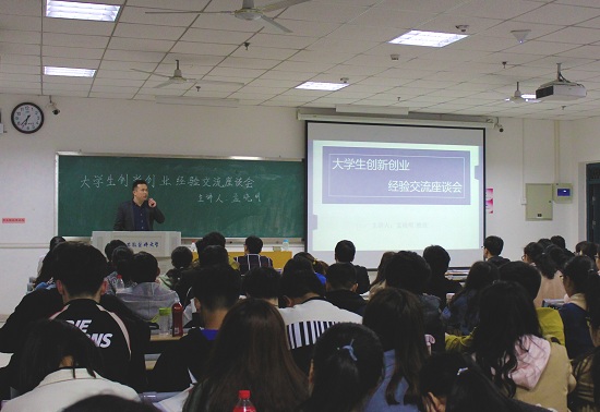 邀请,今天我是来和大家分享失败的经验。”孟教授首先以参加2017年第十五届“挑战杯”中国银行全国大学生课外学术科技作品竞赛为实例,总结参赛过程和经验。接着,从挑战杯比赛的参赛作品要求、流程、准备、团队成员作用等全方位解读大赛,回答了同学们关于参赛的具体问题。进而引申培养学生早期接触科研的方法,大学生创新训练的作用,激发师生的共鸣,轻松诙谐的语言,不时引起阵阵笑声。