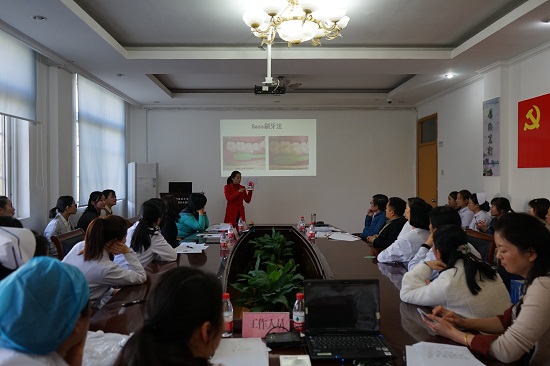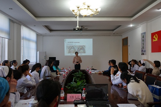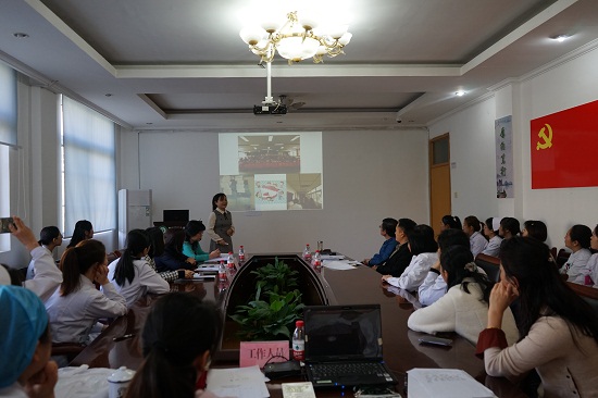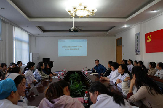 全国口腔院校青年教师讲课比赛一等奖获得者孙晓瑜老师受邀组成评委团。比赛由陈叶俊主持,科室及分门诊部护士长、授课教师、护理骨干、护理代表约40人参加。