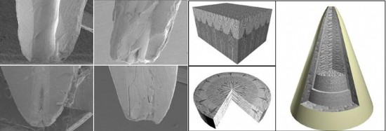 由于龋病、外伤等原因所导致的不可逆性牙髓炎或根尖炎症,目前的医疗手段,一般都是消除炎症和去除病变组织后,采用人工材料进行充填治疗。由于人工材料与牙体组织性质的不同以及微缝隙的存在,服役过程中常伴有材料与牙体组织结合界面处微渗漏的产生,继而导致根管治疗的失败。研发类似牙体组织结构的生物材料,使其与根管牙本质紧密结合,杜绝微渗漏的产生,是目前口腔医学研究的前沿和一项挑战性工作。由永利 李全利教授带领的研究团队,引进根管系统一体化封闭的概念,依据生物矿化的分子机理,采用仿生矿化的技术,进行了根管系统矿化封闭的研究并取得初步成果,实现了根管系统在短期内的迅速矿化封闭,矿化晶体与根管牙本质结合紧密,无微缝隙产生。该研究为未来的临床应用提供了极大可能性,为临床上根管治疗带来了新的方向。